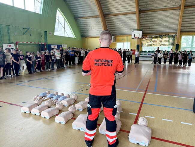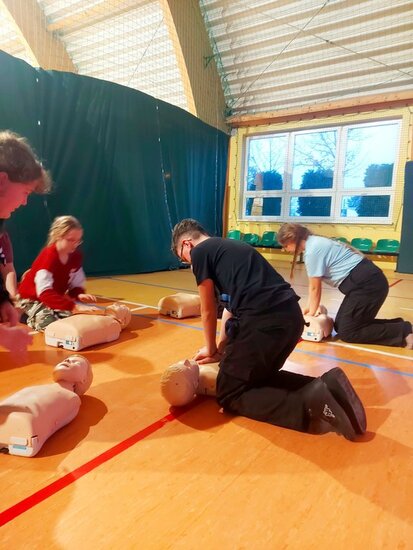 Po powrocie z gry wszyscy uczestnicy wzięli udział w szkoleniu z resuscytacji krążeniowo-oddechowej, które poprowadził Jacek Molęda ze Stowarzyszeniem Ratowników Medycznych Powiatu Nakielskiego. Zajęcia miały na celu rozwijanie praktycznych umiejętności reagowania w sytuacjach zagrożenia życia.
