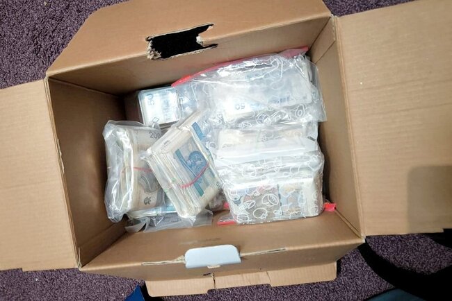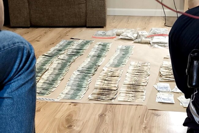 Następnie policjanci skierowali swe kroki do miejsca zamieszkania mężczyzny na Osowej Górze. W kartonie, znajdującym się w szafie oraz w pucharach sportowych, znaleźli sporą ilość gotówki w polskiej walucie. Po przeliczeniu okazało się, że to ponad 797 tysięcy złotych. Było tam też kilkaset dolarów, funtów brytyjskich i koron czeskich, a do tego przedmioty służące do prowadzenia przestępczego procederu – zgrzewarka, folia termozgrzewalna oraz waga elektroniczna. Wszystkie te przedmioty są dowodami w sprawie.