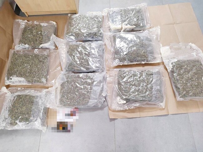 Chwilę później, podczas przeszukania auta, w jego bagażniku funkcjonariusze ujawnili sporych rozmiarów karton, a w nim 10 dużych worków zamkniętych próżniowo z zawartością suszu roślinnego, a także kilkaset złotych. Wstępne badanie narkotesterem potwierdziło, że to marihuana.