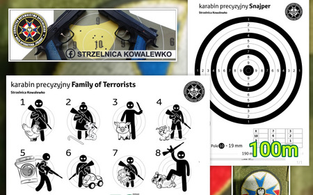 3x mini snajper 50 i 100m karabin z przyżądami celowania dowolnymi, z podparciem z przodu. Łącznie 6 tarcz do ostrzelania (60 strzałów).