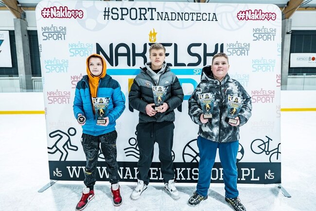 Najmłodsi zawodnicy - Nikodem Smażyk, Filip Mielcarek, Antoni Bembnista (wszyscy Bobry Nakło)