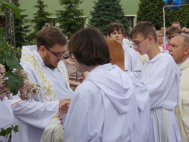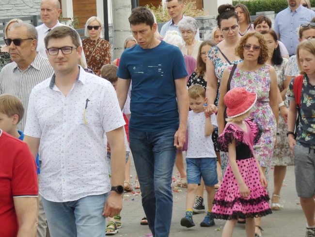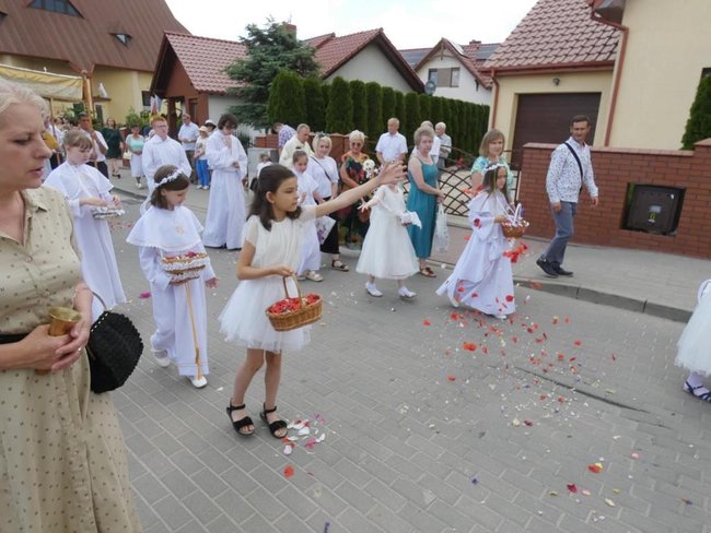 Boże Ciało to święto ruchome i obchodzone jest w ostatni czwartek po oktawie Zesłania Ducha Świętego - zawsze 60 dni po Wielkanocy. Podczas Bożego Ciała tradycyjnie odbywają się procesje ulicami miast do czterech ołtarzy, które symbolizują cztery ewangelie: św. Łukasza, św. Marka, św. Mateusza oraz św. Jana. Nie inaczej było w parafii pw. NMP Królowej Polski w Nakle, gdzie wierni przeszli przez ul. Sienkiewicza, Asnyka w stronę Wichrowego Wzgórza, Mrotecką i Norwida - aż do kościoła.