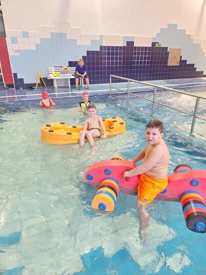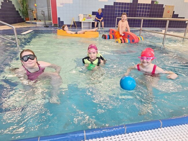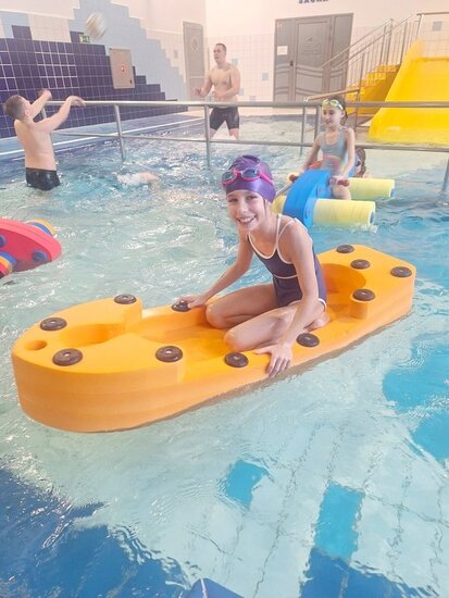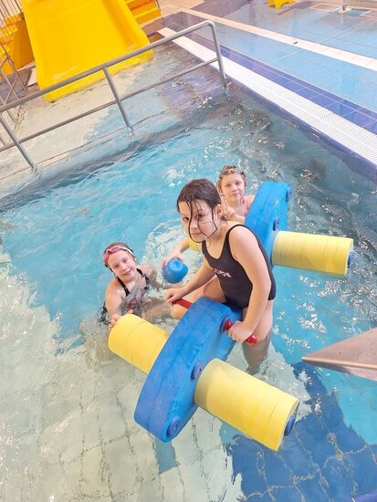 W kolejnej częsci spotkania, wybraliśmy się do krytej pływalni Naquarius, gdzie zabaw w wodzie nie było końca. Tor przeszkód sprawił dzieciom dużo "frajdy", wszyscy starali się przejść go jak najszybciej.