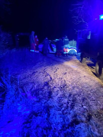Z uwagi na bardzo trudny teren, wspólnie z Policją przeprowadziliśmy ewakuację poszkodowanego i o godz. 23:31 przekazaliśmy go zespołowi ratownictwa medycznego.