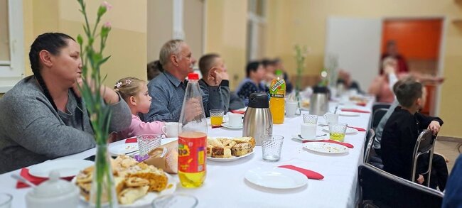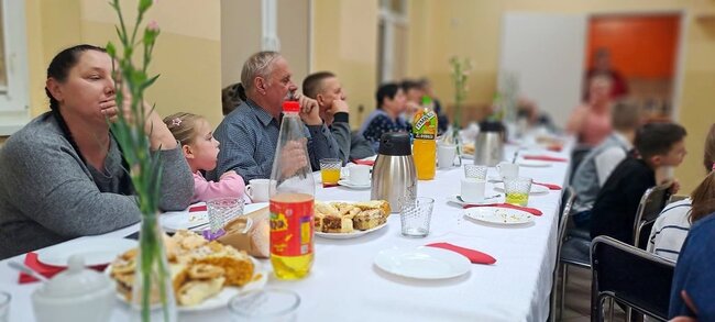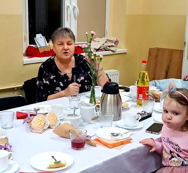 Spotkanie rozpoczęło się od wspaniałych występów dzieci, które dostarczyły wszystkim zebranym wiele radości i wzruszeń. Przy aromatycznej kawie i pysznym cieście czas upłynął w miłej atmosferze.