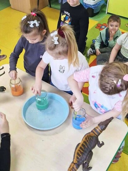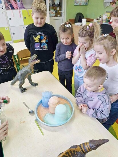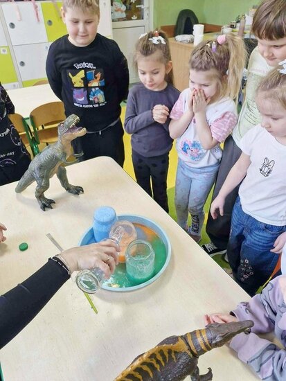 Przedszkolaki wcieliły się w rolę małych paleontologów. Poznały różne gatunki dinozaurów, takie jak Tyrannosaurus rex, Triceratops oraz Stegosaurus. Dowiedziały się, czym się żywiły, jak wyglądały oraz dlaczego wyginęły.