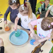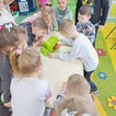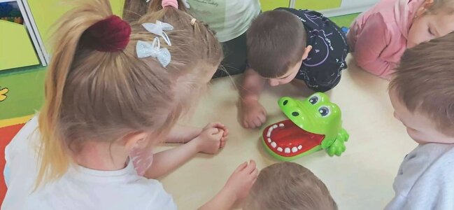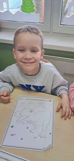 Dzieci brały udział w kreatywnych zajęciach plastycznych, tworząc własne dinozaury z papieru i plasteliny. Uczestniczyły również w „wykopaliskach”, podczas których z ogromnym zaangażowaniem odkopywały ukryte „skamieniałości”. Nie zabrakło także dinozaurowych tańców i wspólnych zabaw ruchowych.
