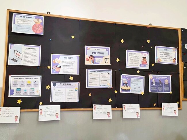 Uczniowie wzięli udział w różnorodnych aktywnościach, takich jak rozwiązywanie zagadek logicznych, wykreślanek oraz quizy matematyczne. Nie zabrakło również kreatywnych akcentów – uczestnicy przygotowali prace plastyczne inspirowane liczbą π.