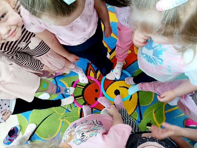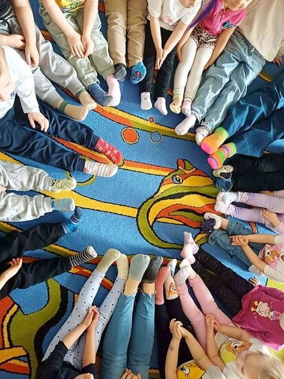Na znak solidarności i tolerancji wszyscy – zarówno dzieci, jak i pracownicy przedszkola – założyli dwie różne, kolorowe skarpetki. Ten prosty gest stał się symbolem otwartości, zrozumienia i akceptacji dla drugiego człowieka.