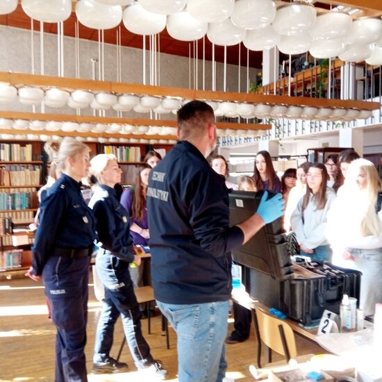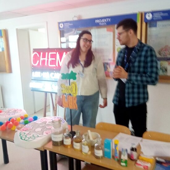 Nasi uczniowie mogli zobaczyć ciekawe pokazy chemiczne Studenckiego Koła Naukowego Chemików: odkryć tajemnice cząsteczek, poznać nowe techniki badawcze – od mikroskopii elektronowej po spektroskopię magnetycznego rezonansu jądrowego. Uczestniczyli w warsztatach laboratoryjnych „Sekretne życie cząsteczek” oraz „Chemia w akcji”. Studenci i pracownicy Wydziału przygotowali interesujące stoiska poszczególnych kierunków: chemia, chemia kosmetyczna, chemia i technologia żywności, chemia kryminalistyczna oraz materiały współczesnych technologii. Największe zainteresowanie wzbudziła chemia kryminalistyczna zaprezentowana przez funkcjonariuszy policji. Ten kierunek studiów koncentruje się na analizie śladów, przygotowuje do pracy w laboratoriach kryminalistycznych i służbach mundurowych.