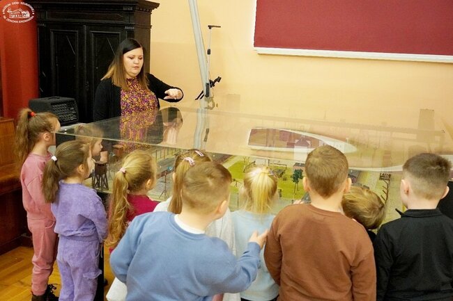 Dzieci poznały tajniki pracy muzealnika, zasady funkcjonowania muzeum a także zaznajomiły się z historią samego budynku Domu Polskiego. Poznały nowe słowa, takie jak artefakt, wystawa, zbiory muzealne, makieta, zabytek. Zwiedzając sale wystawowe dzieci poznały historię szubińskiego zamku, obejrzały militaria z czasów II wojny światowej, wykazały się znajomością zawodów na Pałukach i poznały nazwy tych, które już nie funkcjonują w dzisiejszych czasach. Na zakończenie wykonywaliśmy rysunek ulubionego artefaktu, który zapadł dzieciom w pamięć. Po muzeum oprowadzała Iwona Kruk. Serdecznie dziękujemy za wspólnie spędzony czas wśród naszych skarbów!