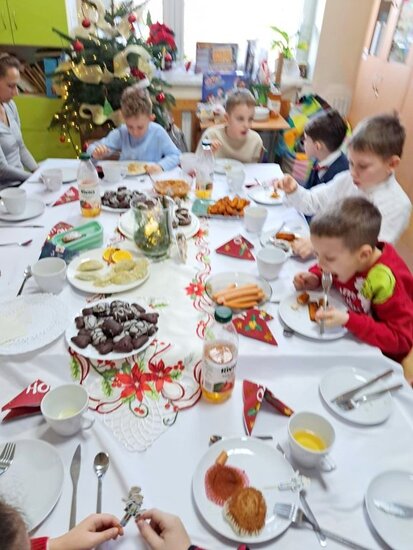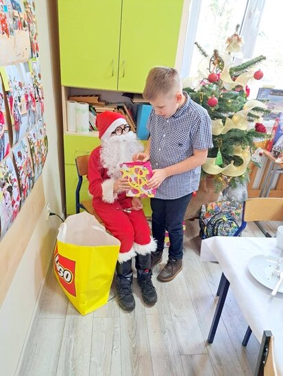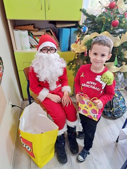 Tego dnia w sali lekcyjnej pojawiła się pachnąca choinka, świąteczne dekoracje, a także wyjątkowy gość – Mikołaj, który wywołał u dzieci mnóstwo uśmiechów i radości.