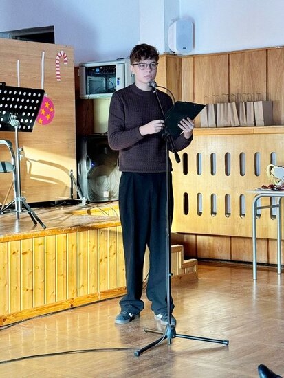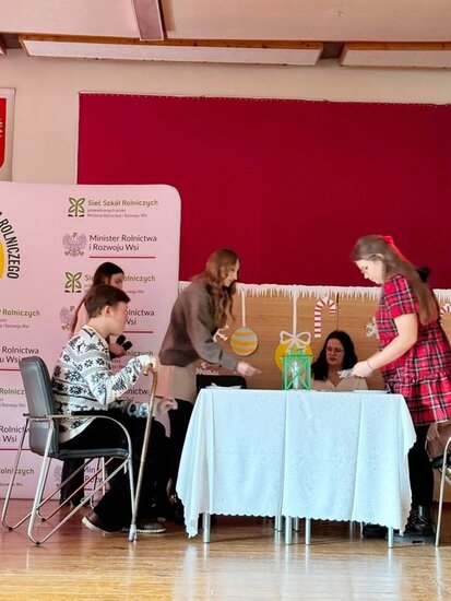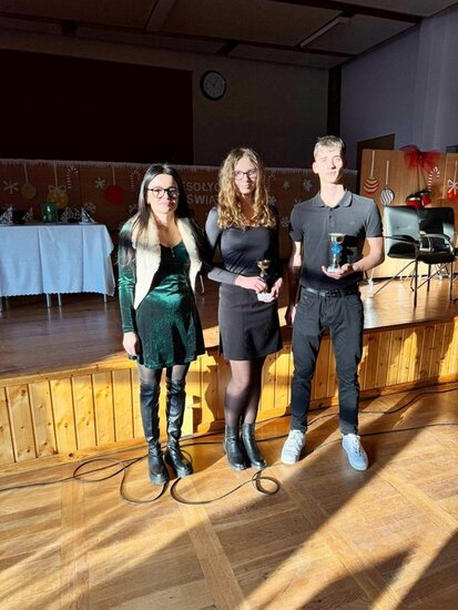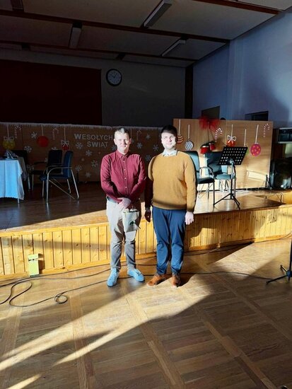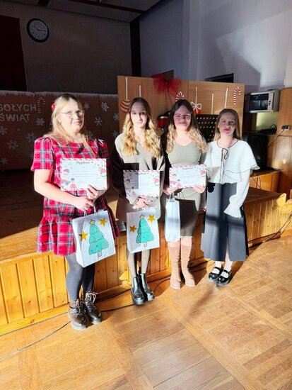Po zakończeniu występu świąteczne życzenia złożyli Pani Dyrektor ZSCKR w Samostrzelu Małgorzata Ciechanowska oraz przewodniczący Samorządu Uczniowskiego Jakub Kulesza. Wręczono także nagrody za szkolne konkursy.