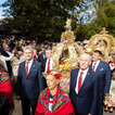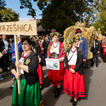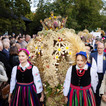 Uroczysta msza polowa. Korowód dożynkowy rolników