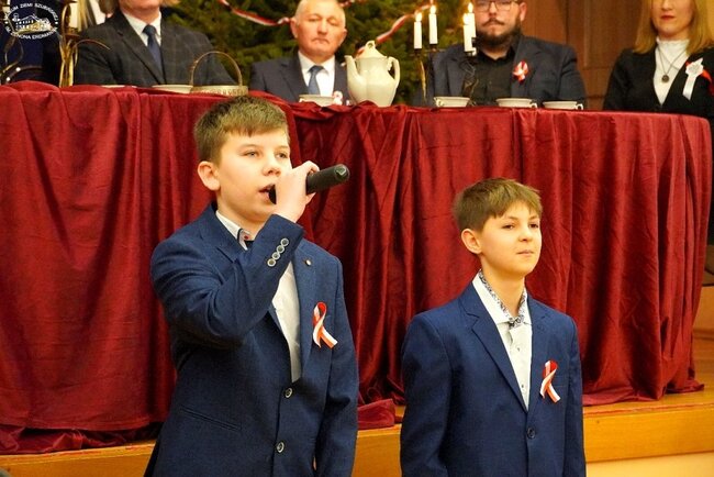 W dalszej części wysłuchano programu słowno-muzycznego. W programie wzięli udział nauczyciele i uczniowie Szkoły Podstawowej nr 2 im. Władysława Broniewskiego w Szubinie oraz osoby działające na rzecz naszej społeczności. Podziękowanie na ręce dyrektora SP2 Macieja Mierzwińskiego oraz zaangażowanych w przygotowanie młodzieży i dorosłych nauczycielek Marioli Polańskiej i Dobromiły Swosińskiej złożyli przewodniczący rady Radosław Borowiak i burmistrz Mariusz Piotrkowski.