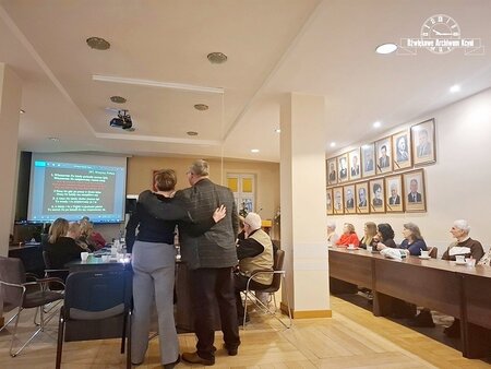 Zaczęliśmy jednak od prezentacji podsumowującej rok, którą przygotowałam na tą okazję. Przekazałam w niej informacje o każdej Ciekawości świata, która się odbyła w kończącym się roku, o Spacerach z historią. Za pomocą zdjęć i filmów wróciliśmy wspomnieniami do tych wydarzeń. W sumie odbyło się aż 17 spotkań w tegorocznej edycji. Na naszym kanale Facebook i Youtube zamieściłam podsumowanie w formie filmowej, tam także znajdziecie rolkę na temat tego, jak wyglądał Wieczór z przebojami. W cyklu Ciekawość świata były miesiące, że spotykaliśmy się dwukrotnie. Na monotonię w tym roku naprawdę nie mogliśmy narzekać. Warsztaty tworzenia ozdób, spotkania autorskie, wycieczka do Muzeum Kanału Bydgoskiego, pokaz retro mody, wykłady... różnorodność form i tematów.