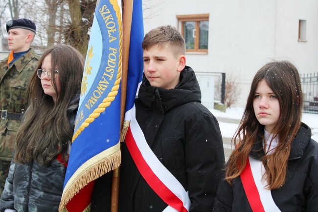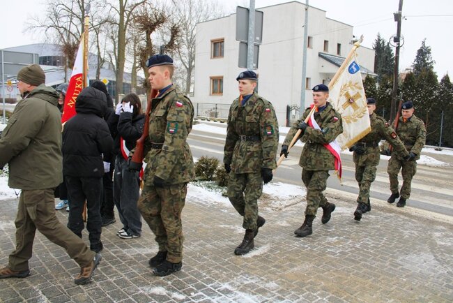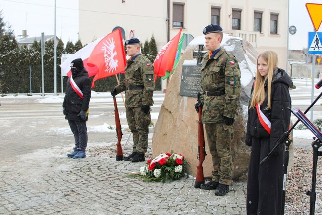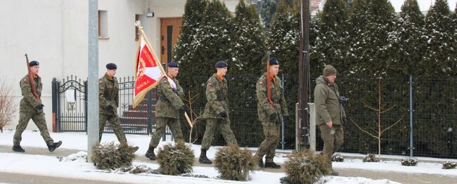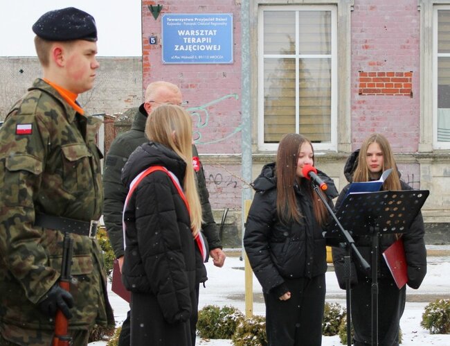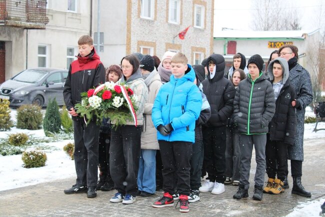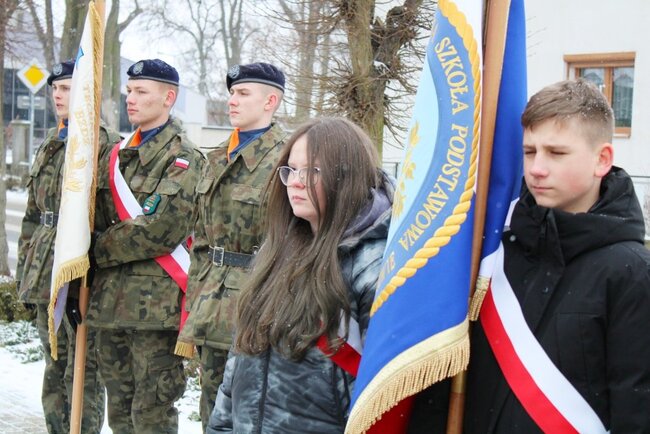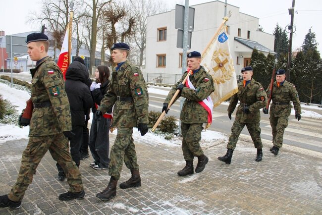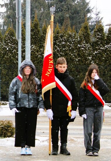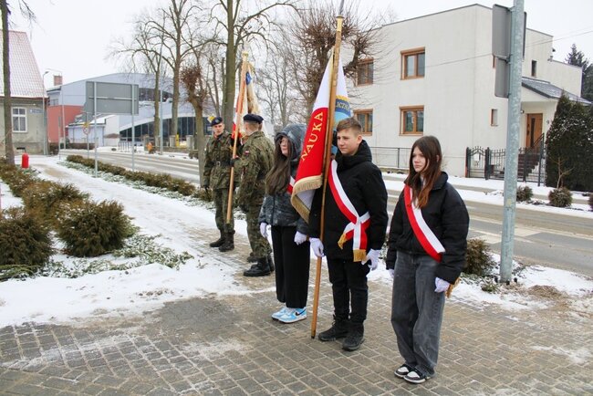 Oczywiście nie mogło zabraknąć w uroczystości „Przyjaciół” naszej szkoły uczniów z Technikum im. Powstania Wielkopolskiego BZDZ w Mroczy, którzy wystawili Posterunek Honorowy przy Obelisku i Sztandar szkoły. Opiekunem „mundurowych” był st. chor. sztab. rez. Łukasz Rozpędowski. Oflagowanie Placu zostało przygotowane przez Referat Obsługi Komunalnej UMiG w Mroczy. Dziękujemy za ten gest współpracy, wsparcia i pomocy.