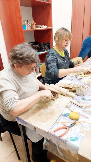 Nie powstrzymała ich nawet awaria prądu. Instruktor Anna Karolczyk zaproponowała im technikę łączenia gliny z tłuczonym szkłem, która wymaga tylko jednego wypały i  jest  bardzo efektowna. Z niecierpliwością czekamy na gotowe prace.