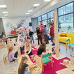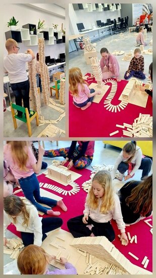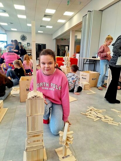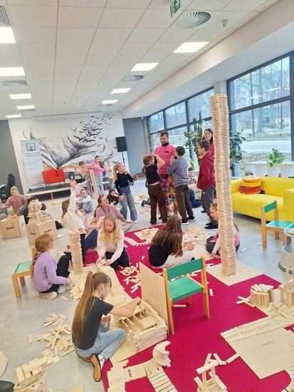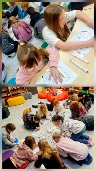 W bibliotece odbywały się również zajęcia kreatywne. Dzieci układały konstrukcje z 10 tysięcy drewnianych klocków, rozwijając wyobraźnię przestrzenną i umiejętność współpracy. Nie zabrakło także spotkania z literaturą. Przygody kota Cukierka zainspirowały uczestników zajęć do warsztatów plastycznych, wykonali oni kolorowe kocie maski, wykazując się pomysłowością i artystycznym talentem.