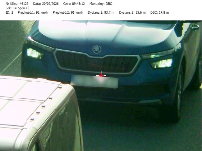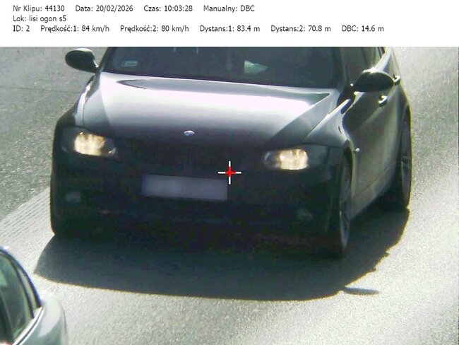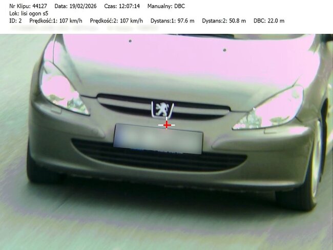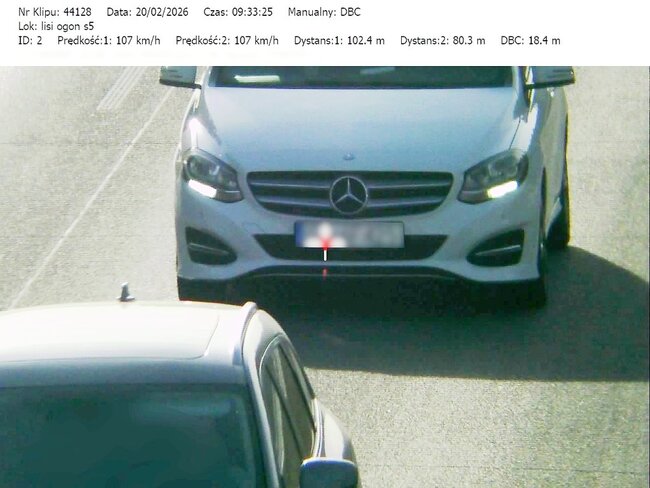 Do działań, które odbyły się w miniony czwartek i piątek (19 i 20.02.26) mundurowi wykorzystali urządzenie TruCAM II wyposażone w funkcję DBC (Distance Between Cars). Umożliwia ono precyzyjny pomiar odległości między pojazdami.