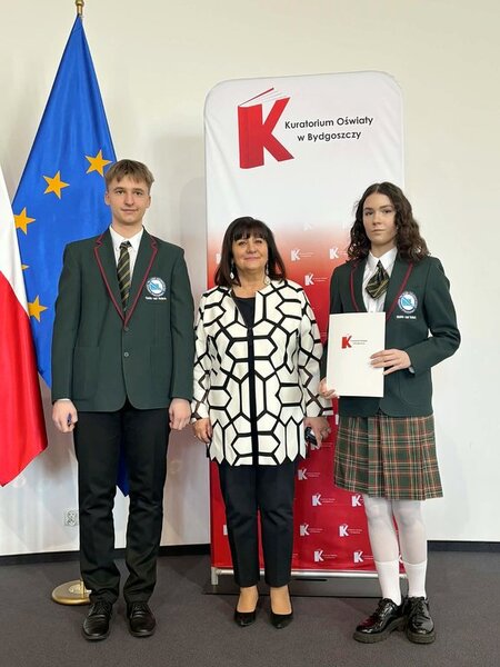 I Liceum Ogólnokształcące im. Bolesława Krzywoustego- zdobywcę Brązowej Odznaki- reprezentowali podczas dzisiejszej gali: Dyrektor Aleksandra Białka i Uczniowie klas IV: Antonina Brzozowska i Mikołaj Wiliński.