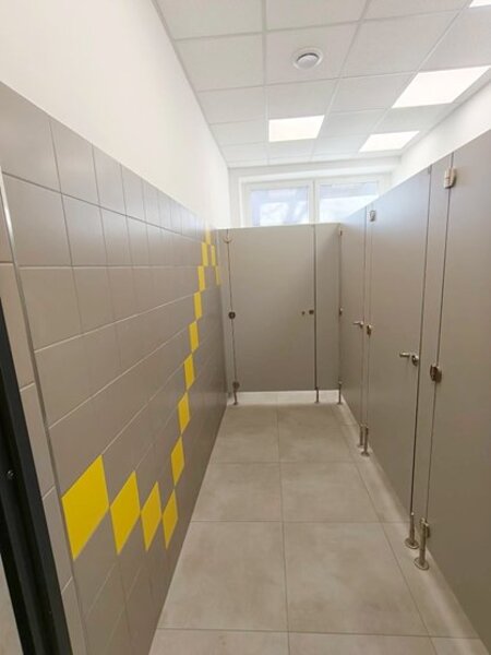 Remont wykonała firma Expo Construction Jacek Zimny. Szkoła zyskała nowoczesny o ciekawych walorach estetycznych łazienkę, która będzie służyła wszystkim dziewczętom.