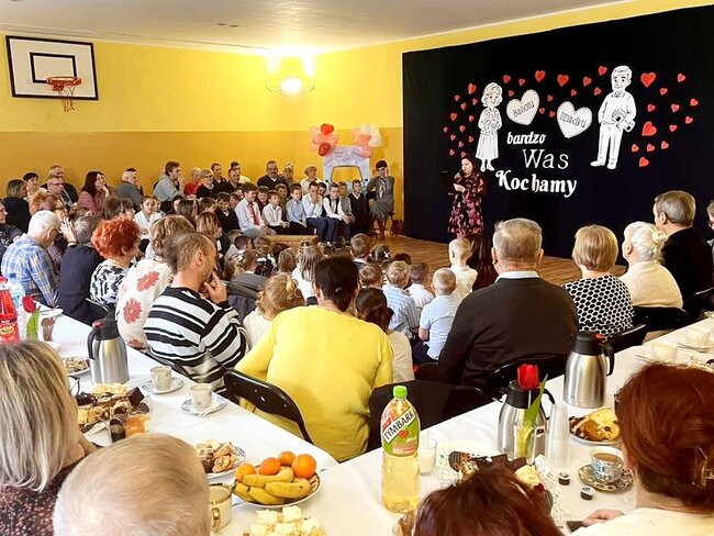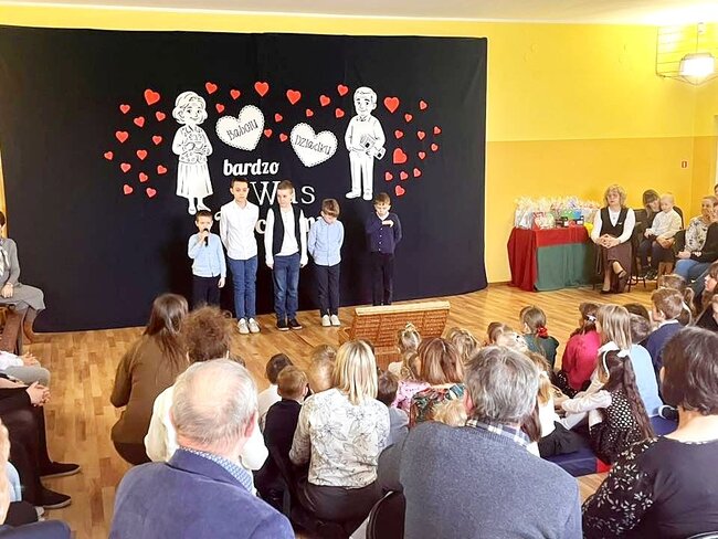Frekwencja była naprawdę spora, jednak na szczęście udało się wszystkich pomieścić i stworzyć ciepłą, rodzinną atmosferę. Dzieci zaprezentowały wesoły program artystyczny, pełen piosenek, wierszy i uśmiechu, który wzruszył i rozbawił zgromadzonych dziadków. Wydarzenie było pięknym wyrazem wdzięczności oraz okazją do wspólnego świętowania i radosnych rozmów. W kolejnej części spotkania odbyła się prelekcja na temat zdrowego odżywiania, podczas której p.Lidia Lasik zwróciła uwagę na to, jak za pomocą odpowiedniej diety dziadkowie mogą dbać o swoje zdrowie, dobre samopoczucie i codzienną energię. Serdecznie dziękujemy wszystkim zaangażowanym w przygotowanie tej uroczystości!