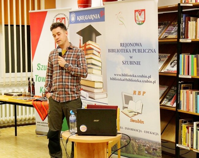 Spotkanie w styczniowy wieczór, było bogate w zdjęcia i krótkie filmiki.  Nie musimy chyba dodawać , że czytelnia szubińskiej biblioteki była pełna po brzegi a pytania do autora spotkania nie miały końca. Dziękujemy Szymonie!