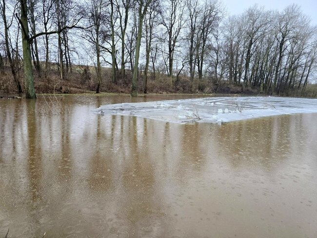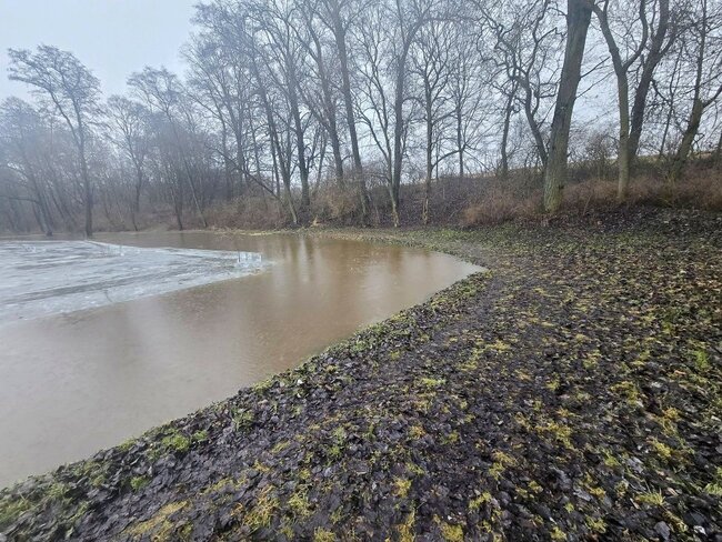 Poziom wody na stawie w# Smogulcu osiągnął nienotowany dotąd poziom. To efekt gwałtownych roztopów i zalegającej pokrywy lodowej.