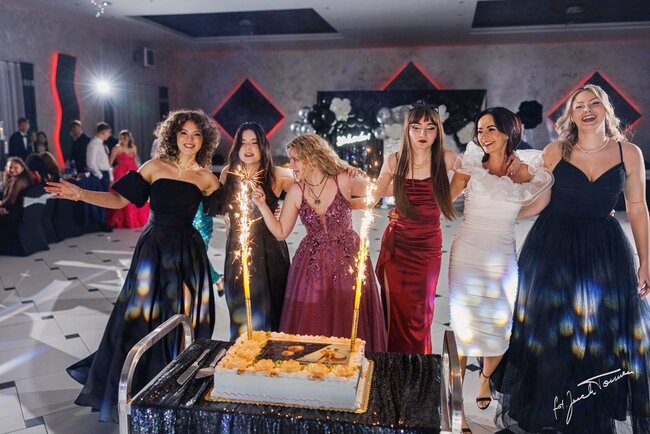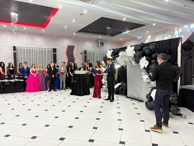 Wieczór od pierwszych chwil zachwycał atmosferą radości, wzruszeń i wspólnego świętowania. Uczniowie, we współpracy z Rodzicami, perfekcyjnie przygotowali całe wydarzenie – od oprawy organizacyjnej po dbałość o każdy szczegół. Eleganckie stroje, piękna dekoracja sali oraz doskonała muzyka sprawiły, że parkiet przez wiele godzin tętnił życiem.