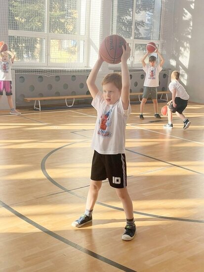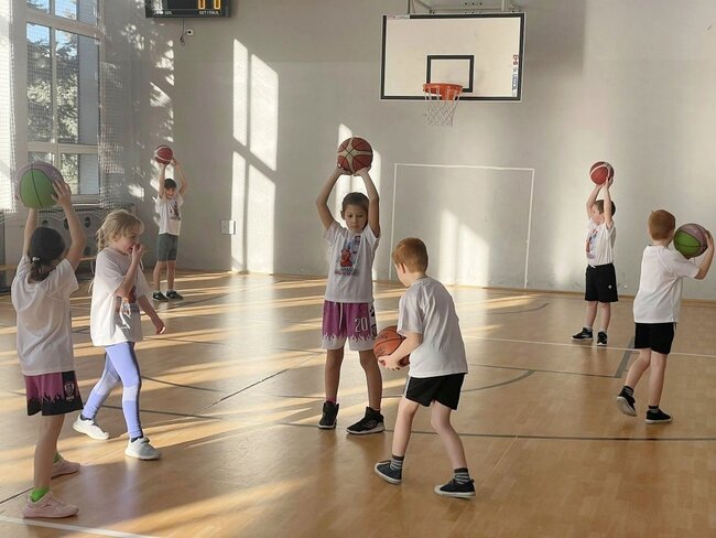 Codziennie nasi mali podopieczni trenują gry i zabawy pokrewne koszykówce, a najstarsza grupa ma już za sobą 5 pełnych treningów koszykarskich.
