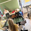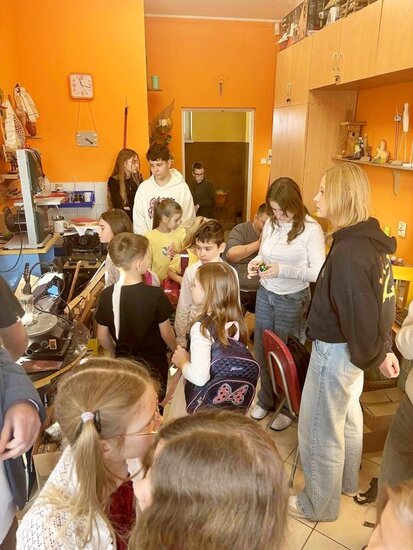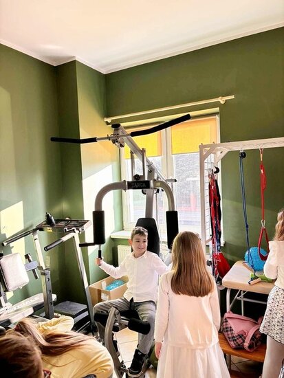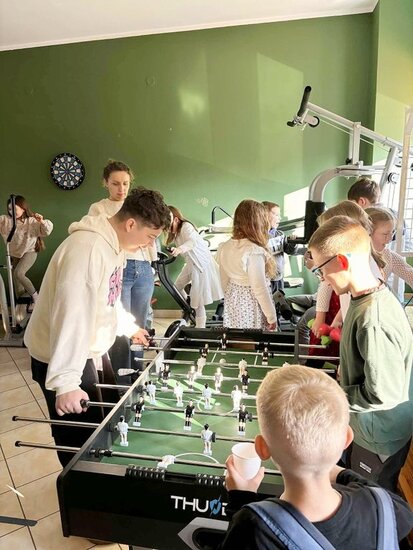 Po występie na uczniów czekał słodki poczęstunek oraz napoje. Mieliśmy również okazję zwiedzić Warsztaty Terapii Zajęciowej i dowiedzieć się więcej o ich codziennym funkcjonowaniu. Największym zainteresowaniem wśród dzieci cieszyła się sala rehabilitacyjna, gdzie mogli zagrać w piłkarzyki, poćwiczyć na sprzęcie sportowym lub zrelaksować się na fotelu masującym.