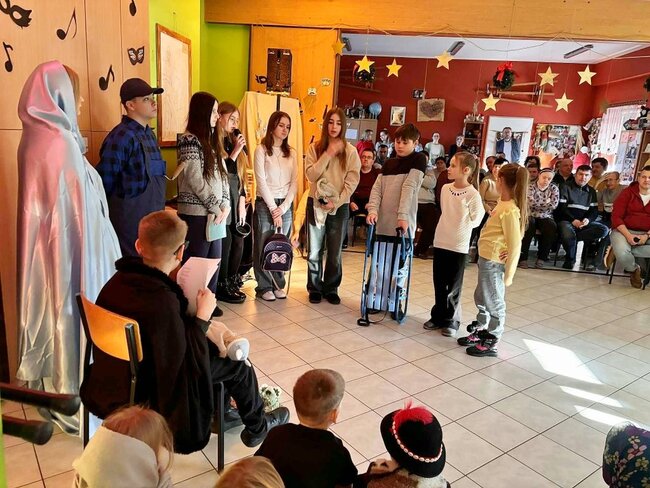 Wyjazd był nie tylko okazją do zaprezentowania talentów aktorskich i muzycznych, ale również ważną lekcją wrażliwości, empatii oraz dzielenia się radością z innymi. Serdecznie dziękujemy uczniom za piękny występ oraz nauczycielkom – pani K. Brzykcy i pani A. Chojnackiej – za wspaniałe przygotowanie przedstawienia.
