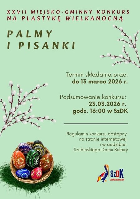 Zapraszamy dzieci i młodzież z# Gminy Szubin do udziału w wielkanocnym konkursie organizowanym przez Szubiński Dom Kultury.