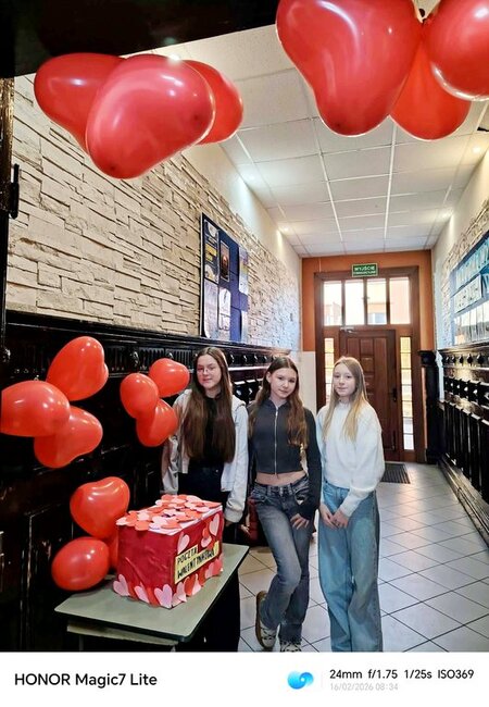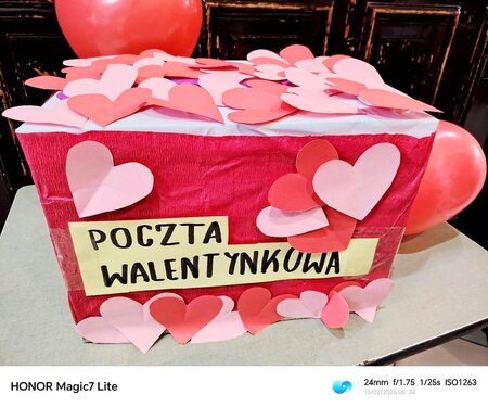 W szkole zrobiło się wyjątkowo serdecznie i kolorowo – wszystko za sprawą poczty walentynkowej. Uczniowie mieli okazję przekazać sobie miłe słowa, kartki i walentynkowe wiadomości, które przez cały dzień wywoływały uśmiechy na twarzach adresatów.