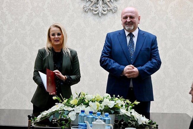 Uroczystość rozpoczęła kierownik Urzędu Stanu Cywilnego Monika Niedbała, która serdecznie powitała Jubilatów oraz zaproszonych gości, podkreślając doniosłość tego niezwykłego święta. W swoim wystąpieniu zwróciła uwagę na wartość małżeństwa opartego na wzajemnym szacunku, zaufaniu i odpowiedzialności.