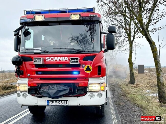 W poniedziałek krótko przed godziną# 13 na Stanowisko Kierowania Komendanta Powiatowego Państwowej Straży Pożarnej w Sępólnie Krajeńskim wpłynęło zgłoszenie o pożarze na trasie między Trzcianami, a Skarpą, droga wojewódzka nr 241.