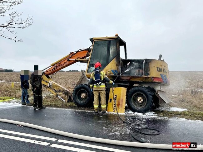 Na miejsce zadysponowano zastęp z Jednostki Ratowniczo-Gaśniczej w Sępólnie Krajeńskim. Na miejscu okazało się, że na drodze wojewódzkiej doszło do pożaru koparki. Na czas działań droga była zablokowana. W zdarzeniu nikomu nic się nie stało. Na miejscu pracował także patrol policji.