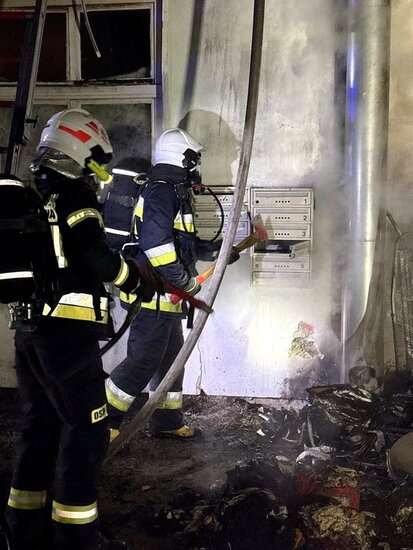 Po przybyciu na miejsce okazało się, że sytuacja jest o wiele bardziej poważna niż pierwotnie zakładano, pożarem objęte były nie tylko śmieci, ale również elewacja budynku, poszycie dachu oraz jedno z mieszkań. Ogień szybko się rozprzestrzeniał, stwarzając zagrożenie dla obiektu. W budynku znajdowali się śpiący mieszkańcy, których ewakuację prowadzili obecni na miejscu policjanci oraz strażacy. Na szczęście w wyniku zdarzenia nikt nie odniósł obrażeń.