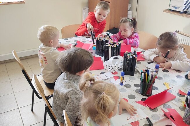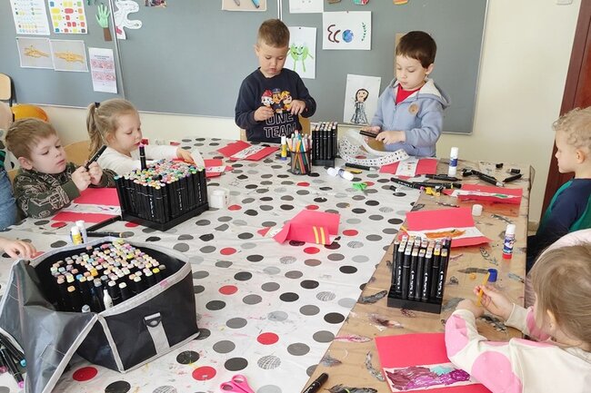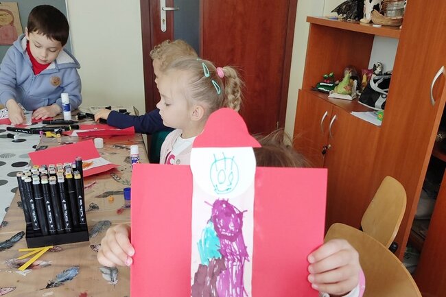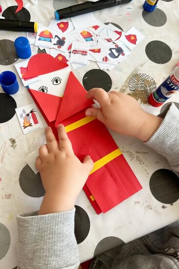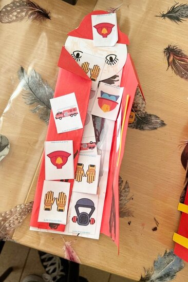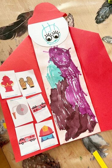 W części plastycznej dzieci stworzyły postacie dzielnych strażaków z papieru, na których mogli przykleić obrazki przedstawiające ważne atrybuty związane z tym zawodem jak wąż, gaśnica,hydrant, rękawice, hełm itp. Każda praca była wyjątkowa, brawo dla naszych małych artystów!