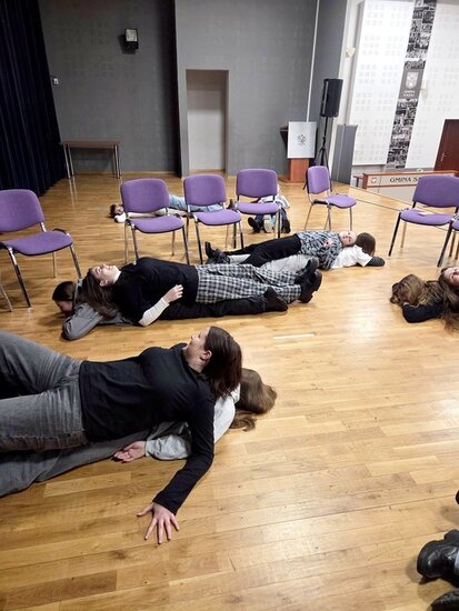 Odgrywanie kolejnych scenek pozwalało na pokazywanie różnych emocji. Śmiech mieszał się ze smutkiem, a reakcje zmieniały się jak w kalejdoskopie. Nie zabrakło ćwiczeń gdzie zaufanie i współdziałanie pozwalało osiągnąć sukces.