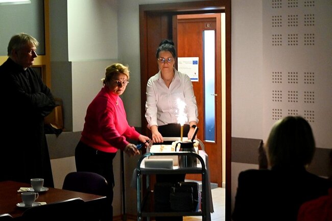 Część artystyczną zapowiedziała dyrektor Gminnego Ośrodka Kultury, Iwona Biniak, zapraszając publiczność na występ zespołu tanecznego AleBabki z Piły. Tancerki zaprezentowały widowiskowy program pełen różnorodnych choreografii i kolorowych kostiumów. Ich dynamiczny i radosny występ spotkał się z entuzjastyczną reakcją widowni, która nagrodziła artystki gromkimi brawami. Energia płynąca ze sceny szybko udzieliła się publiczności, wprowadzając pogodną atmosferę. Na zakończenie przygotowano słodki poczęstunek. Okolicznościowy tort serwowali wójt Michał Piszczek oraz ks. Witold Korowajczyk.