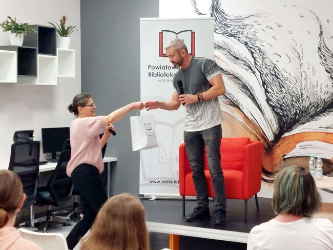 W czwartek 26 marca nakielską bibliotekę# odwiedził zielonogórzanin Przemysław Piotrowski, niegdyś dziennikarz śledczy i sportowy, od lat autor bestsellerowych książek kryminalnych i thrillerów. Najbardziej znany z wielotomowej serii z komisarzem Igorem Brudnym w roli głównej. Pisarz dotychczas wydał 20 książek – pierwszą był „Kod Himlera”, najnowszą „Markiz”.