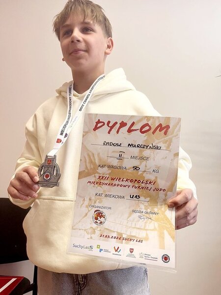 Z radością informujemy#, że uczeń Niepublicznej Szkoły Podstawowa Stowarzyszenia „Żakus” w Anielinach – Radosz Nurczyński – odniósł kolejny sukces sportowy zdobywając srebrny medal na międzynarodowych zawodach judo!