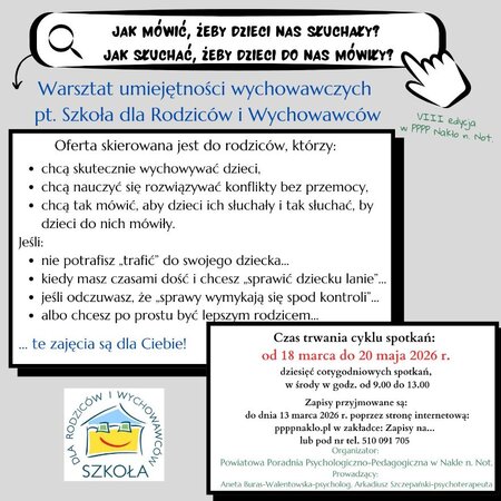 Warsztat umiejętności wychowawczych# pt. Szkoła dla Rodziców i Wychowawców VIII edycja w PPPP Nakło n. Not.