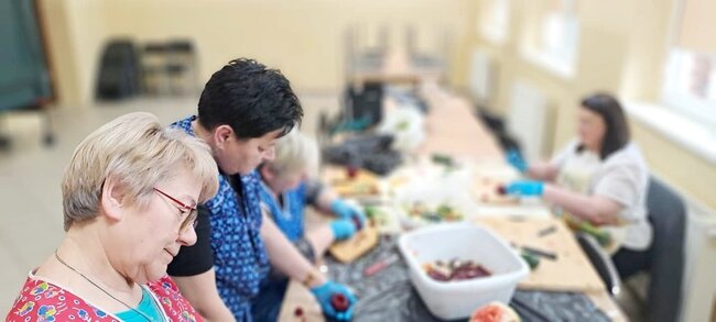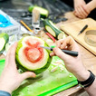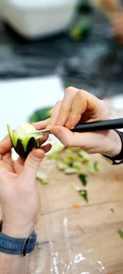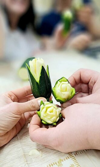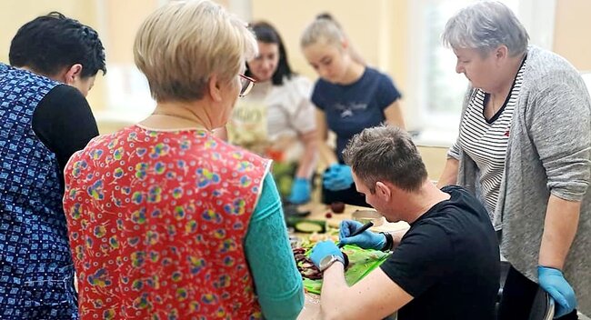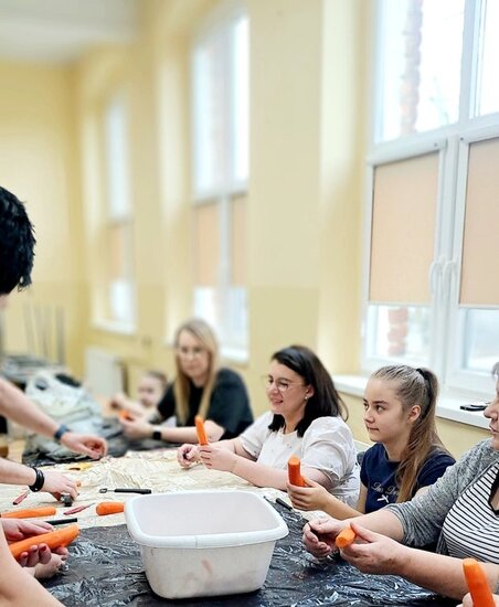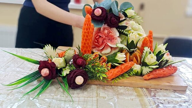 Ale to nie wszystko! Po emocjonującej rozmowie przeszliśmy do części praktycznej – szkolenia z carvingu. Efektem naszej pracy była przepiękna kompozycja z owoców i warzyw, która zachwyciła wszystkich uczestników.