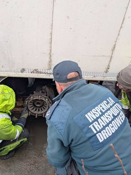 W związku z podejrzeniem usterki w układzie hamulcowym na miejsce wezwano inspektorów Wojewódzkiego Inspektoratu Transportu Drogowego w Bydgoszczy. Szczegółowa kontrola, przeprowadzona na stacji paliw w Brzozie k. Bydgoszczy, wykazała poważną nieprawidłowość techniczną.
