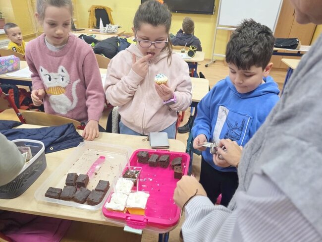 Tradycją u nas są zbiórki sportowe. Inicjatywa ta to wspólny pomysł nauczycielki wychowania fizycznego Joanny Kowalskiej i polonistki Pauliny Kasprzak. 16 stycznia 2026 roku odbył się turniej siatkówki dla klas IV - VIII, nie zabrakło jak zawsze drużyny nauczycielskiej. Gra przebiegała w miłej, choć zaciętej atmosferze. Rywalizacja była ogromna, ale pierwszy raz zwyciężyli nauczyciele. Kolejno II miejsce zajęli najstarsi uczniowie klasa VIII , a tuż za nimi - z niewielką strata punktów uplasowali się - uczniowie klasy V. Wpisowe zasiliło orkiestrową puszkę. 23 stycznia br. odbył się turniej hokeja dla klas I - III. Podobnie jak klasy starsze składki wzbogaciły budżet orkiestrowy. Dzieci bawiły się świetnie, nauczone zdrowej, sportowej postawy , nikt się nie obrażał, a uśmiechy nie znikały z buzi. Wiadomo, że zwycięzca może być tylko jeden. Laur pierwszeństwa mieli uczniowie klasy II (pół klasy) , II miejsce zajęli uczniowie klasy III. Trzecie miejsce na podium przypadło zaś drugiej połowie klasy II. Równocześnie odbywała się akcja Samorządu Uczniowskiego "Słodki piątek" . Przepyszne kolorowe babeczki, wielobarwne galaretki, a nawet gofry pachnące latem i świeżymi owocami z bitą śmietana - to produkty, które serwowano wszystkim w szkole. Ich sprzedaż także zapełniała puszkę WOŚP. W tym miejscu, jako opiekun SU pragnę podziękować wszystkim zaangażowanym. Trzeba podkreślić, że zawsze możemy liczyć na pomoc rodziców, którzy wykazali się swoimi zdolnościami cukierniczymi . Nie brakuje wśród naszej społeczności zrozumienia i zgrania. Akcje raz zorganizowali nauczyciele, a kolejny poczęstunek to już dzieło wspólne- grona pedagogicznego, pracowników szkoły i przede wszystkim rodziców.