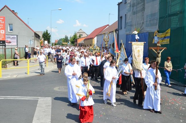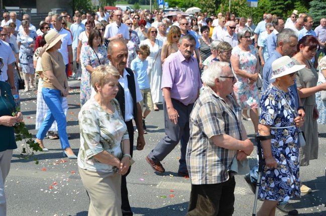 Procesja prowadziła do czterech ołtarzy. Przy każdym z nich wierni zatrzymywali się i wysłuchali fragmentów Ewangelii (I stacja - ustanowienie Eucharystii, II stacja - cudowne rozmnożenie chleba, III stacja - opowiadanie o uczniach idących do Emaus, IV stacja - fragment Modlitwy Arcykapłańskiej Jezusa z Ostatniej Wieczerzy). Całej procesji towarzyszyła podniosła i uroczysta atmosfera. Tradycyjnie nie zabrakło dziewczynek sypiących kwiaty.