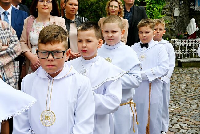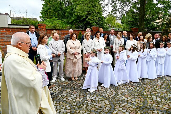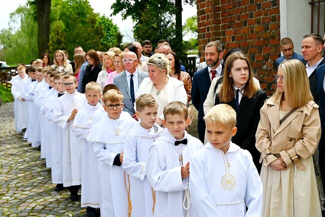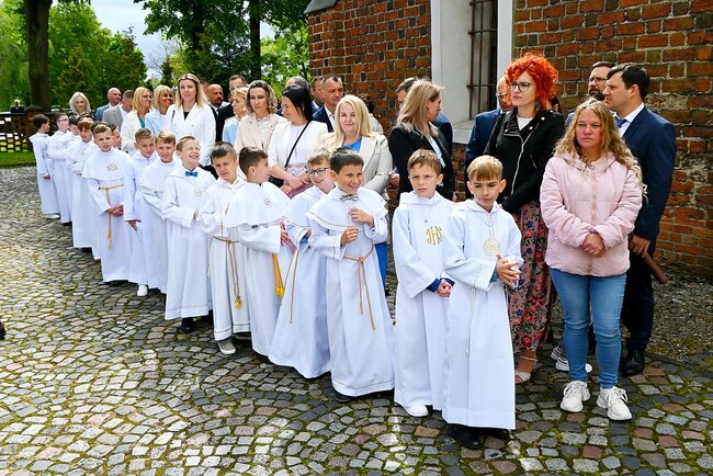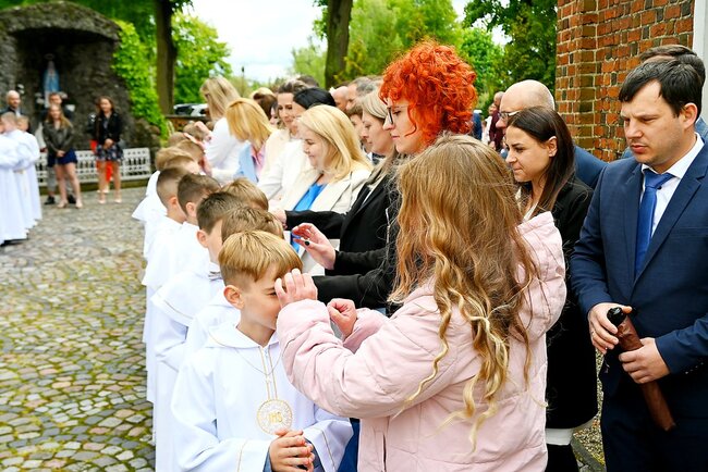 Przed rozpoczęciem mszy świętej, dzieci gromadziły się na placu przed świątynią, gdzie rodzice udzielali im błogosławieństwa. Następnie wszyscy udali się do kościoła, by wspólnie uczestniczyć w komunijnym nabożeństwie. Sakramentu Pierwszej Komunii Świętej udzielił dzieciom proboszcz ks. kanonik Tadeusz Lesiński.